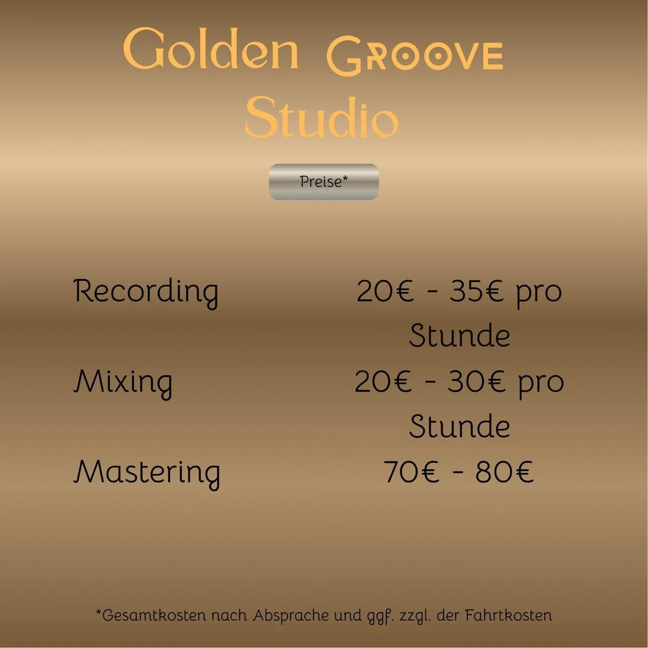 Alle Preise dienen nur als grober Orientierungspunkt. Die genauen Kosten werden nach dem ersten unverbindlichen Telefonat mitgeteilt und können daher abweichen.